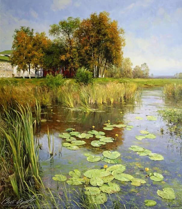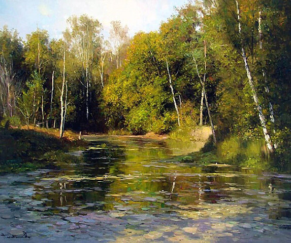 Мне кажется, "Заросший пруд" у него с Левитаном перекликается.