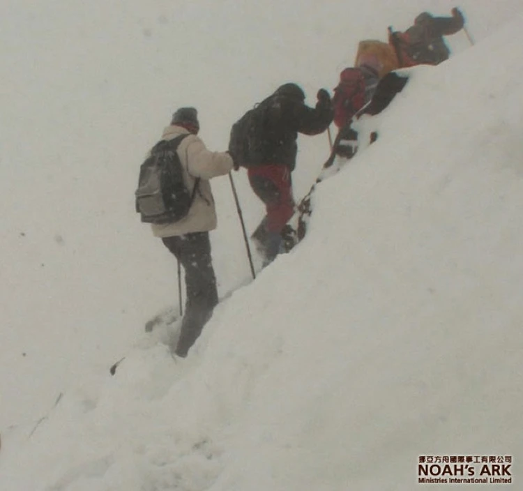 Якобы путь до Ноева ковчега исследователям указали курды, которые провели их секретными тропами по склону горы Арарат в октябре 2009 года. Судно находилось на высоте чуть более 4 тысяч метров.