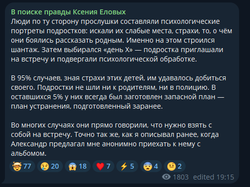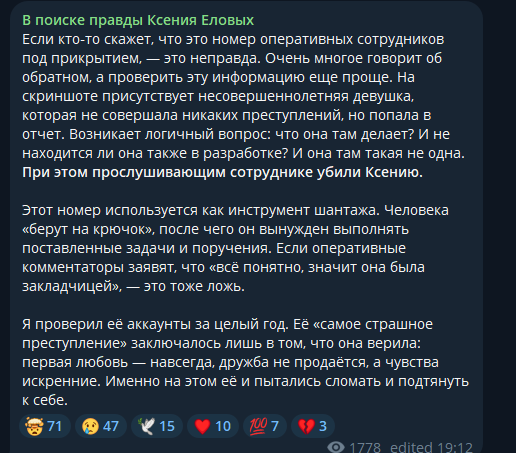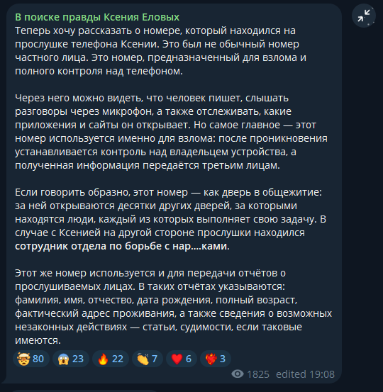 Теперь пишет, что К. Под колпаком отдела по борьбе с наркотиками. Да еще скрины приводит списков героинщиков , распространителей наркоты и воров. И все это к собственной дочери притянул.