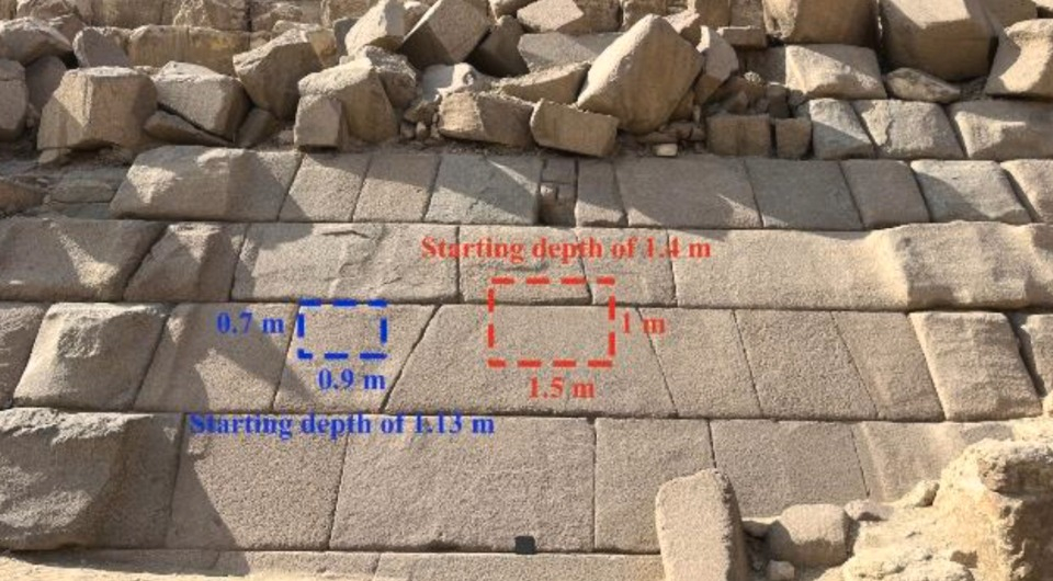 После того, как ученые обработали и проанализировали полученные данные, они пришли к выводу, что за гранитной облицовкой могут скрываться две пустоты. Одна из них, возможно, достигает 1,5 метра в ширину и 1 метра в высоту. Предположительно, она начинается в 1,35 метра от внешней поверхности пирамиды. Вторая вероятная пустота чуть меньше. В ширину она может достигать 0,9 метра, в высоту — 0,7 метра. Эта аномалия, по данным исследователей, располагается примерно в 1,1 метра от внешней поверхности облицовки.