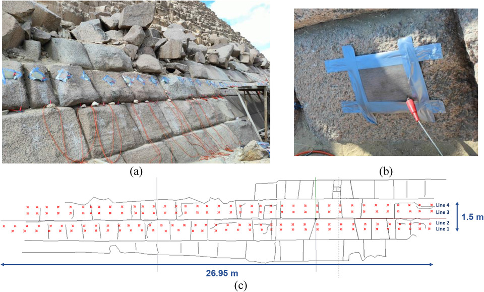 Чтобы проверить эту гипотезу, Халид Хелал (Khalid Helal) из Каирского университета вместе с коллегами из Германии, Египта, США и Франции воспользовались неразрушающими исследовательскими методами. Сначала ученые обратились к электротомографии, с помощью которой они проанализировали участок облицованной гранитными плитами восточной стороны пирамиды размером 26,95 × 1,5 метра. Они искали аномалии, которые теоретически могут представлять собой неизвестные пустоты. Затем меньшие по площади участки (6 × 4,05 и 5,4 × 1,3 метра), где были выявлены предполагаемые аномалии, исследователи дополнительно изучили с помощью георадара и метода ультразвуковой дефектоскопии.