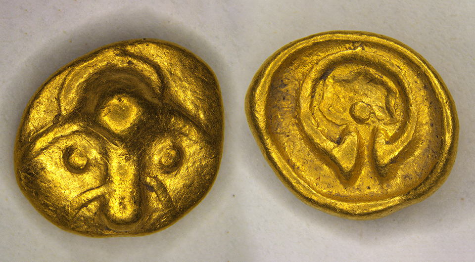 Исследователи определили, что раскопанная монета состоит практически из чистого золота и весит около двух грамм. На ее аверсе изображена стилизованная голова животного (возможно, оленя), а на реверсе — шейная гривна, звезда и сфера. Артефакт примечателен тем, что территория Саксонии располагалась за пределами зоны расселения кельтских племен. Скорее всего, монета не использовалась представителями местной элиты в качестве платежного средства, а выступала предметом роскоши или сбережением. До недавнего времени древнейшей монетой, обнаруженной в Саксонии, выступал серебряный квинарий I века до нашей эры, найденный в 2007 году неподалеку от небольшого города Пегау.