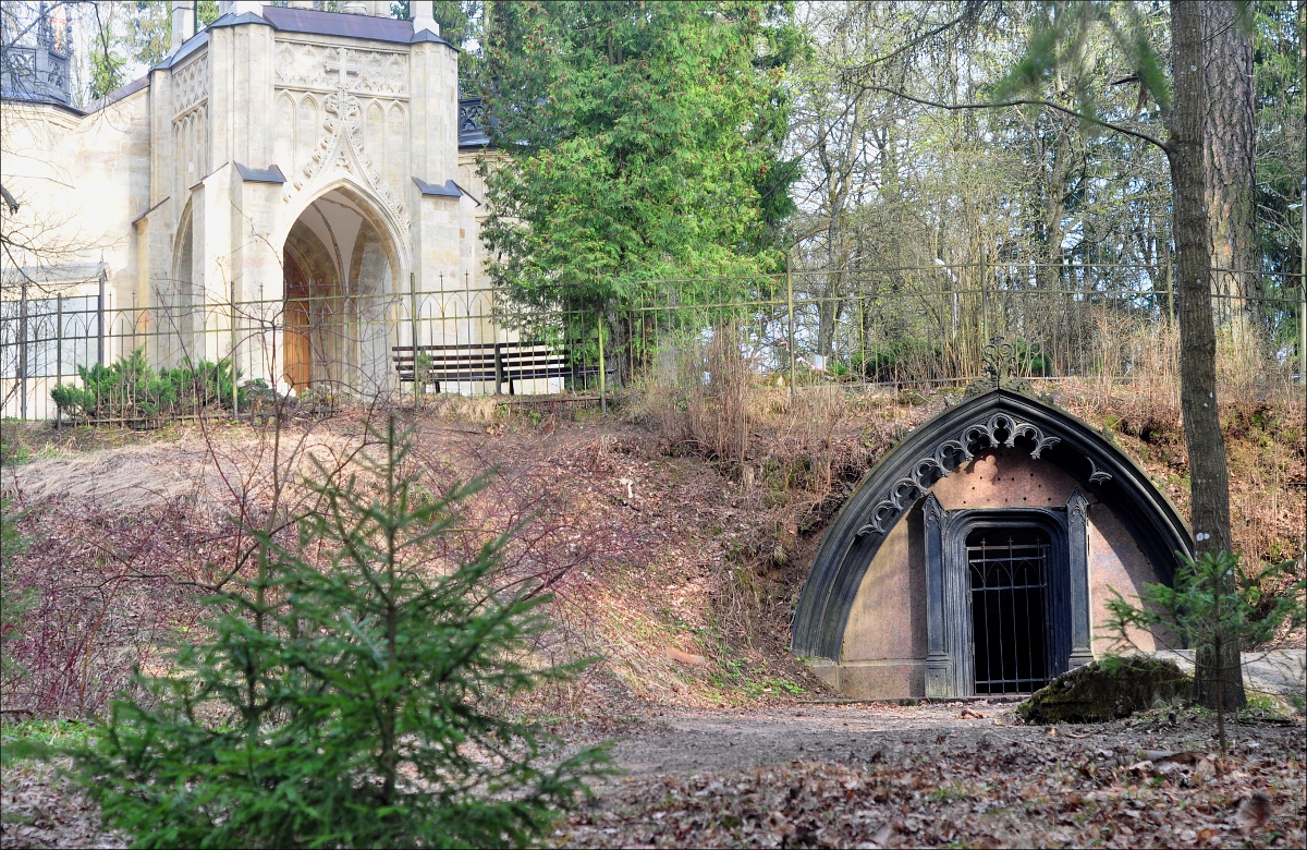 Такую необычную для России церковь она строила для мужа Адольфа, которого безутешная вдова похоронила в склепе почти под ней, прозванным Адольфовой могилой: