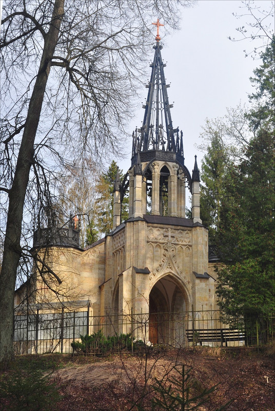 Но не будем о грустном, жемчужиной парка является прекрасная готическая церковь Петра и Павла, построенная по проекту архитектора Апександра Брюллова(это брат Карла) 1830 г. Варварой Петровной Шаховской, а восстановлена в 1990-х.
